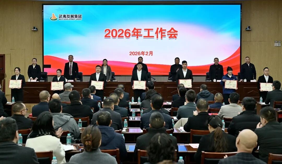 会议首先听取了2025年度工作与党建工作报告,并安排部署2026年主要工作。过去一年,集团主要经济指标实现较快增长,营业收入获得新突破成功获评AAA主体信用评级,沙南高速、农林大新校区等重点项目建成投用,矿业整合、资产盘活、新兴产业培育等方面成效显著。党建工作中,集团党委深入推进“党建+”融合,打造“武发扬帆”党建品牌,在重大项目一线设立党员先锋队,推动党建与生产经营同频共振。