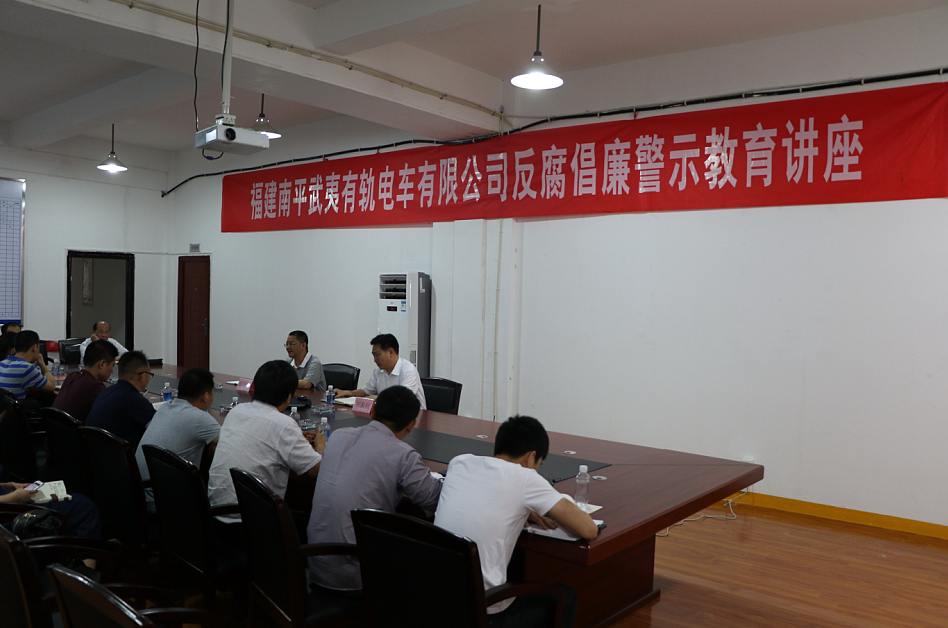 为了进一步加强和改进自身作风建设,筑牢拒腐防变的思想道德建设和党纪国法防线,努力营造风清气正的发展环境。5月10日,南平武夷有轨电车有限公司邀请市高速办纪委书记刘振旺、市检察院职务犯罪预防处副处长官卫东为全体党员干部作了加强作风建设和反腐倡廉教育专题讲座。