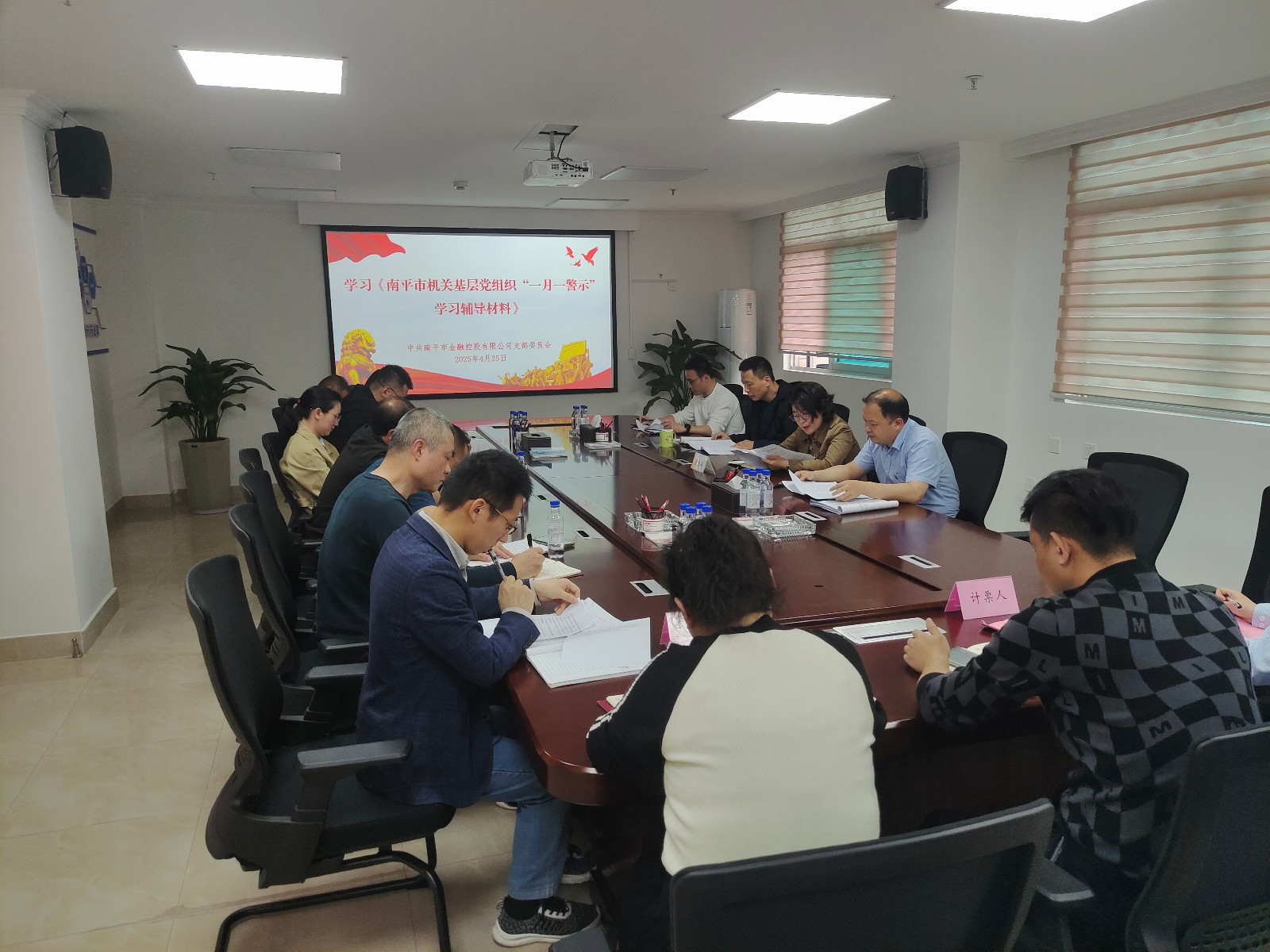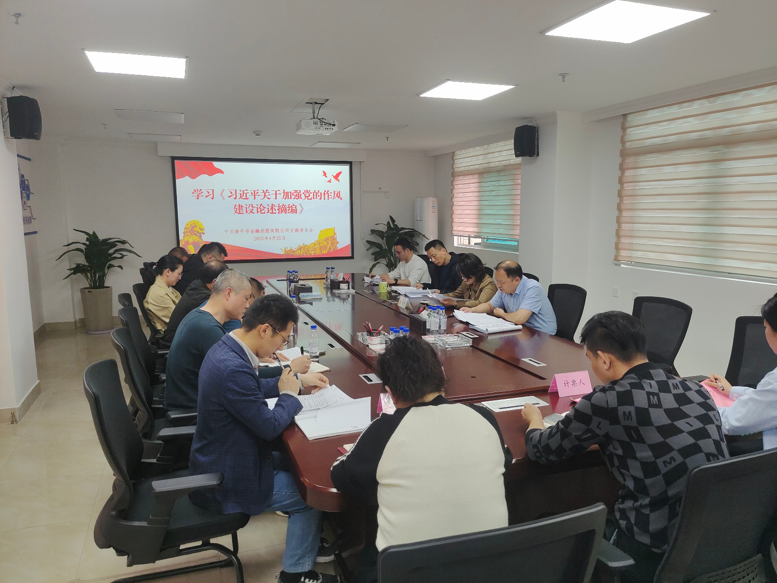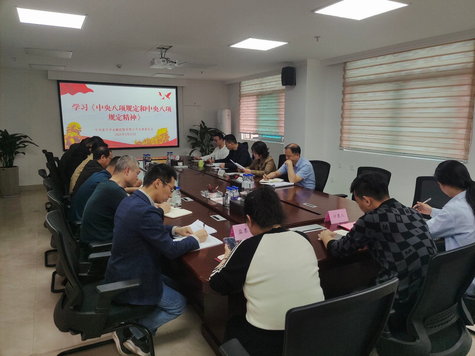 4月25日,金控公司党支部开展深入贯彻中央八项规定精神学习教育,支部书记翁月琦主持会议,全体党员参加会议。