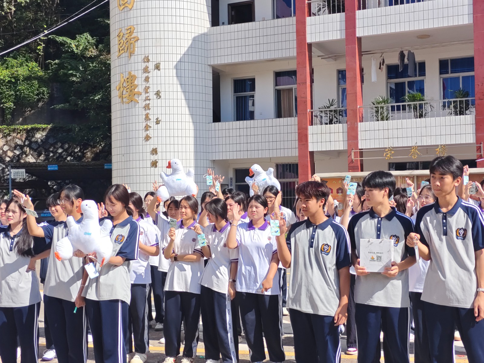 在“盲盒幸运爆爆爆”低碳奖励环节,学生们凭借游戏积分兑换惊喜盲盒礼物。现场气氛热烈,绿色安全的理念在欢声笑语中深入人心。