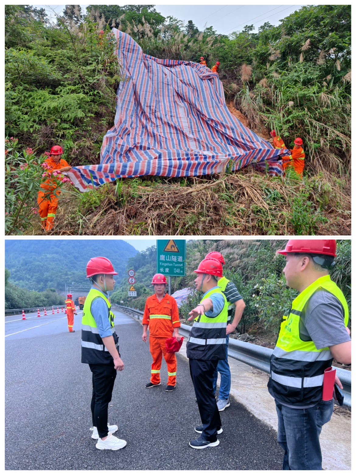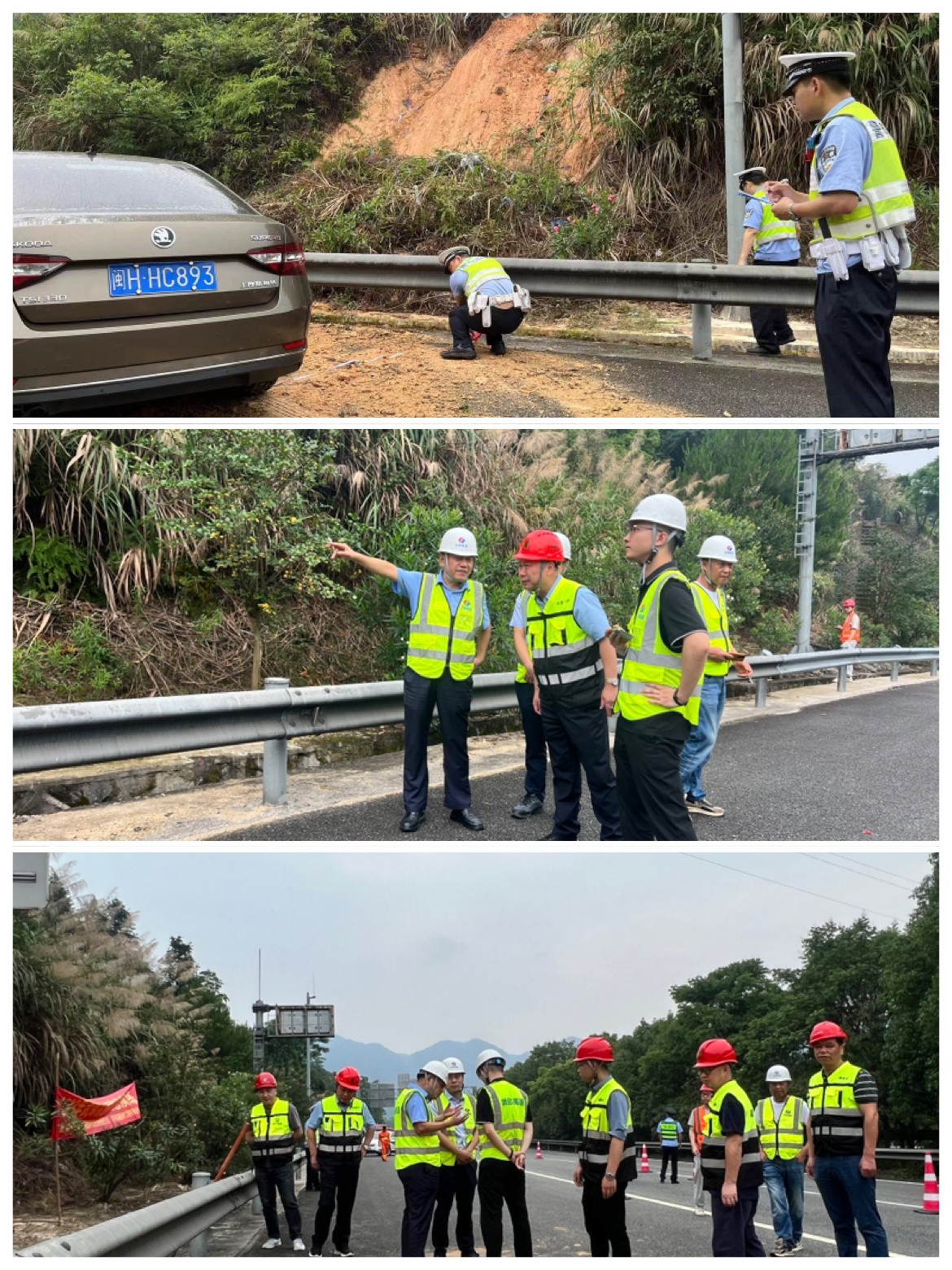 此次演练现场模拟了高速公路边坡水毁溜方现场。“险情”发生后,各演练单位反应迅速,密切配合,高速交警、高速综合执法单位对滞留、过往车辆进行疏导、分流,养护单位对发生险情路段进行安全布控,并以最快速度展开险情处治、应急抢险,清除路面障碍物,疏通边沟,边坡应急防护,第一时间抢险除患保畅通。