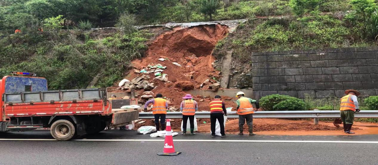 4月18日到19日南平市遭遇暴雨侵袭,延平区过程累积雨量为40—60mm。4月19日凌晨0时40分左右高建养护公司来舟养护站在巡查时发现延顺高速公路AK90+100处上边坡因强降雨发生严重塌方,塌方体积约200立方米,塌方体侵入高速公路应急车道影响行车安全,情况十分危急。